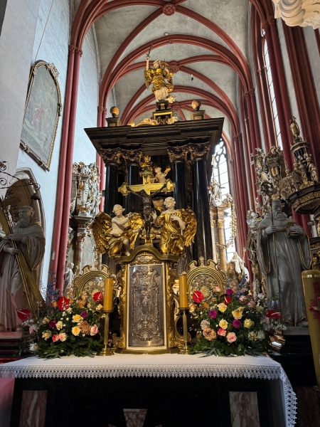 Jak co roku nasi Parafianie wyruszyli do Grobu Świętej Jadwigi w Trzebnicy. Choć początkowo pogoda nie sprzyjała i zanim dotarliśmy do Mostów Trzebnickich gdzie mieliśmy dołączyć do Pieszej Pielgrzymki Wrocławskiej wszyscy byli już przemoknięci a część osób nawet zrezygnowała z dalszej wędrówki. Na szczęście za chwilę wyszło słońce i zanim doszliśmy do pierwszego postoju ubrania wyschły. Teraz czekało nas już tylko 25 km pielgrzymowania. W Trzebnicy już nikt nie pamiętał o porannym deszczu a wszyscy, którzy dotarli uczestniczyli w uroczystej Mszy św. pod przewodnictwem Kardynała Grzegorza Rysia, który wygłosił również Słowo Boże.